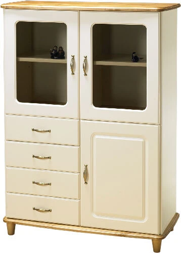 Aino kaapistossa on kolme irtohyllyä ja neljä laatikkoa, metallisilla liukukiskoilla varustettuna. Lasi on 4 mm pronssilasia.