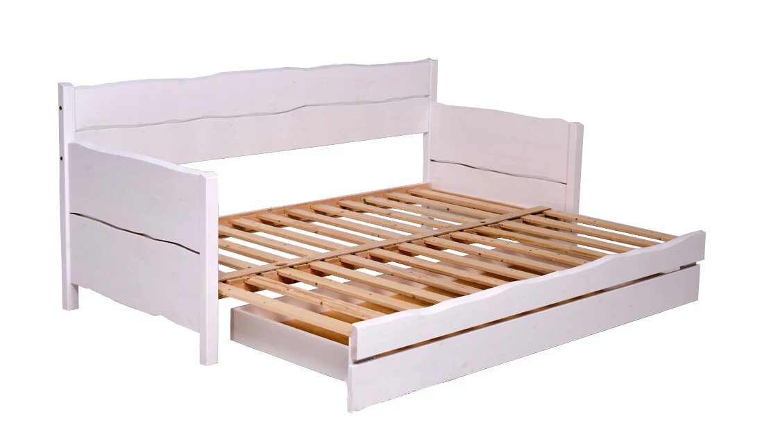 Kaunis massiivipuinen ja laadukas levitettävä laverisohva taittopatjasarjalla. Puuosat on kuultopetsattu ja puun syyt loistavat kauniisti värin alta. Sohva saatavana kahdessa petsivärivaihtoehdossa. Patjasarjan väri on harmaa. Hintaan sisältyy myös kätevä vuodevaatelaatikko.
