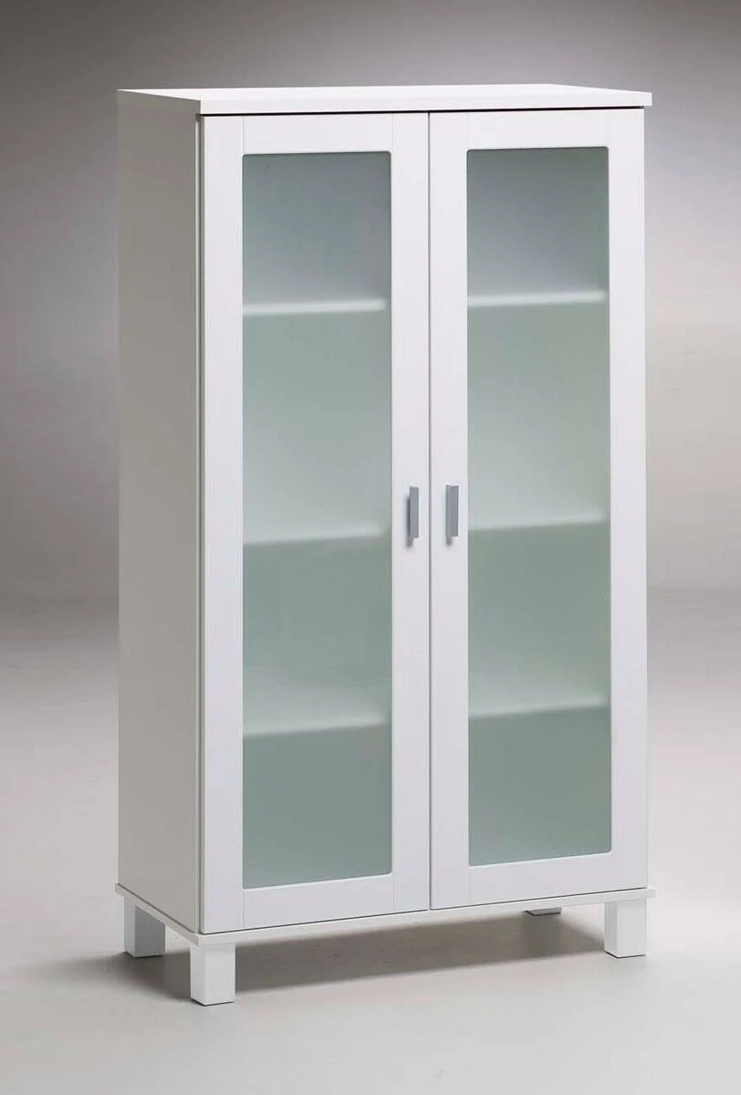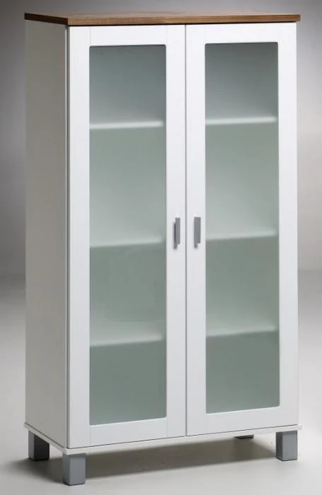 Korkealaatuisen Fondi-tuotesarjan leveä vitriini kahdella lasiovella ja kolmella välihyllyllä. Keskimmäinen hylly on kiinteä, 2 muuta hyllyä ovat korkeussäädettävät. Voit valita vitriiniin kirkkailla lasiovilla tai maitolasiovilla.