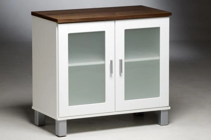 Matala lasiovikaappi kahdella lasiovella