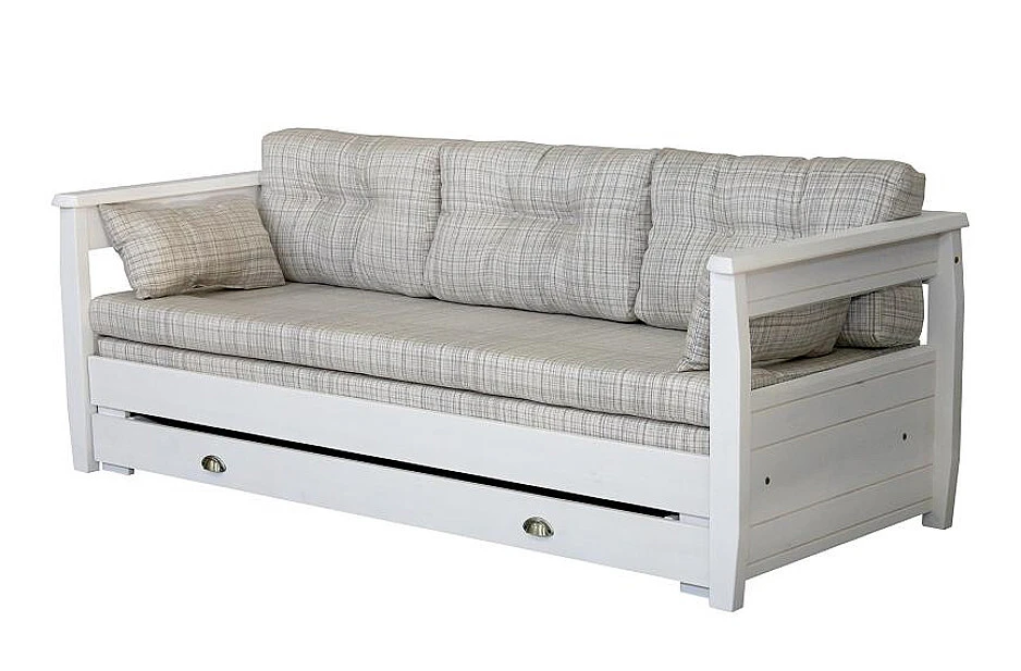 Todella jämäkkä Janne laverisohva on valmistettu massiivimännystä. Sohvassa on reilunkokoinen vuode ja vuodevaatelaatikko. Pehmustesarja sisältyy hintaan. Saatavana kolmessa kuultovärivaihtoehdossa.