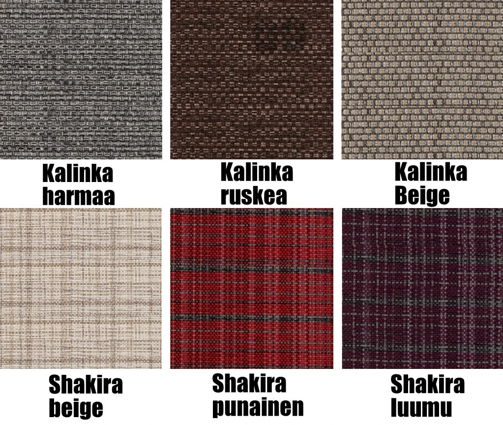 - 2 kangasvaihtoehtoa, 3 värivaihtoehtoa