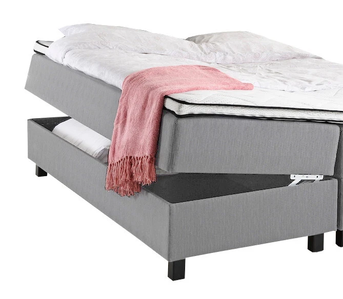 Laatikkosänky on verhoiltu korkealaatuisella Inari huonekalukankaalla. Voit valita värin kahdesta verhoiluväristä. Sängyn keskiosassa on allergiaystävällinen puuvillasekoitekangas tikatulla pehmytvanupäällisellä (60 g/m2).