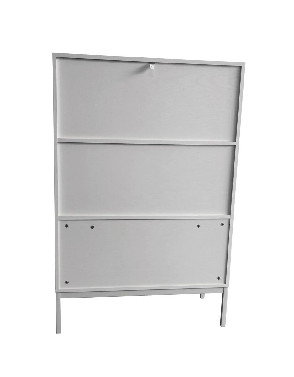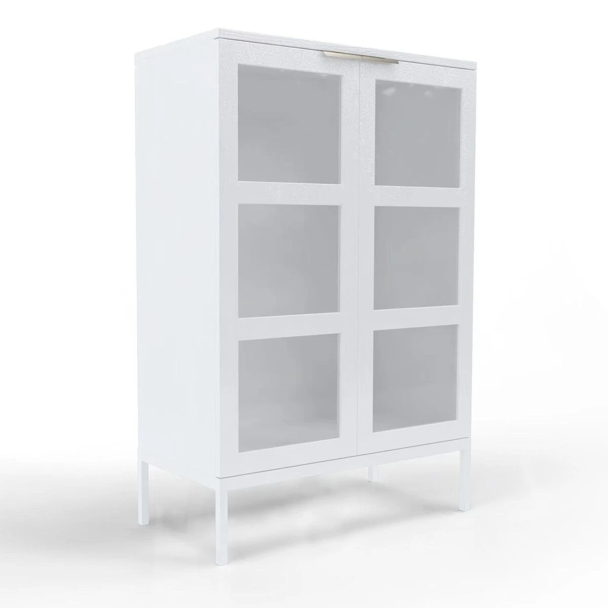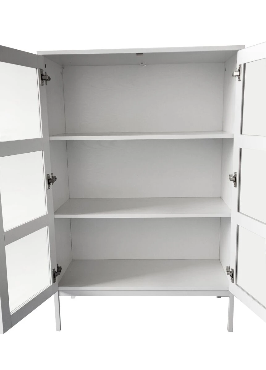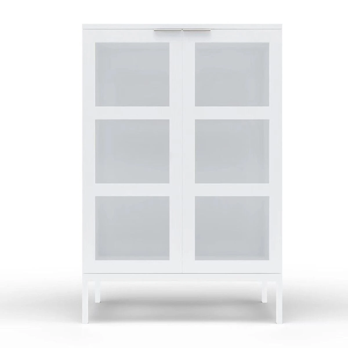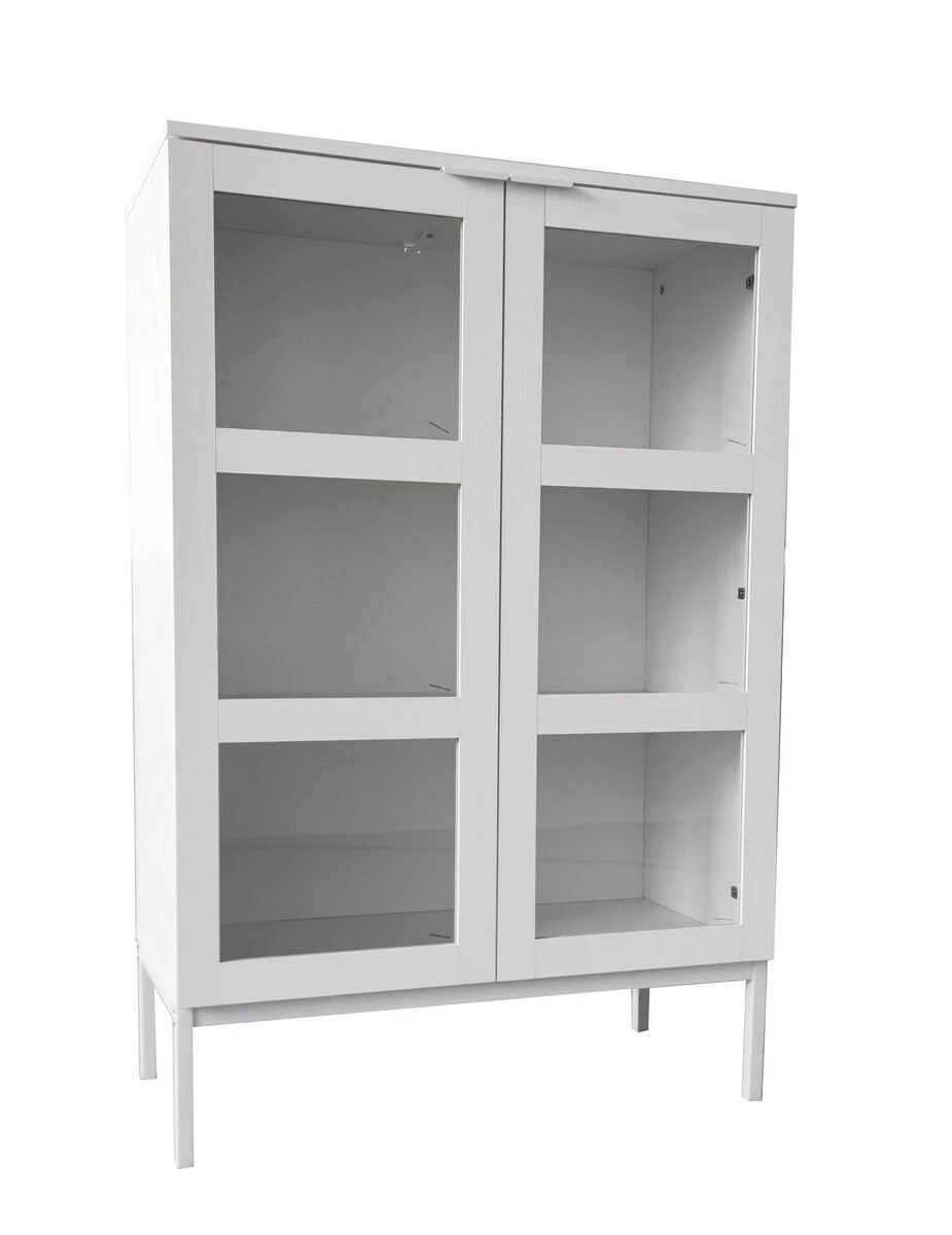 Siera lasiovikaapin valkoinen väri yhdistettynä metallijalkaan ja kahvaan luo modernin ja hillityn tyylikkään kokonaisuuden.