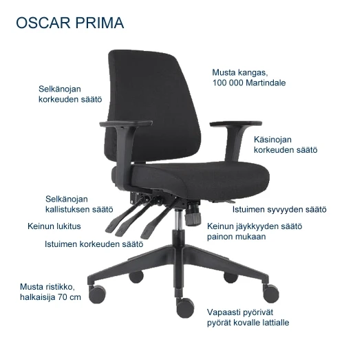 Oscar Prima on monipuolisilla säädöillä varustettu työtuoli kotiin tai konttoriin.