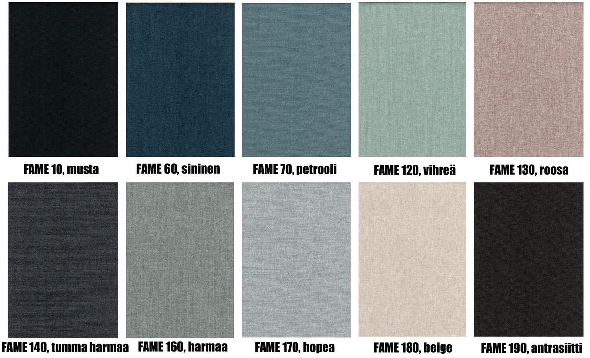 - 4 kangasvaihtoehtoa, runsaasti värejä