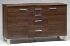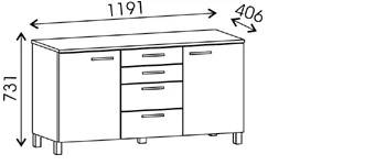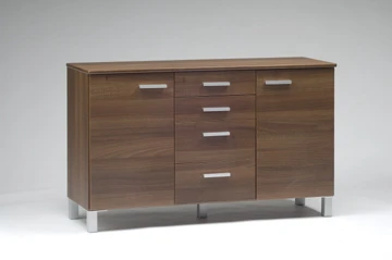 Tyylikäs Rooma-sarjan senkki neljällä vetolaatikolla ja kahdella kaapilla. Senkki on valmistettu kotimaassa ja materiaalina on käytetty laadukasta kalustelevyä.
