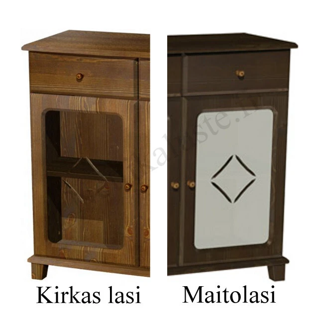 Ovet saatavana umpiovella, kirkkaalla lasilla tai maitolasilla. Lasiovessa on keskellä kaunis koneistettu kuvio.