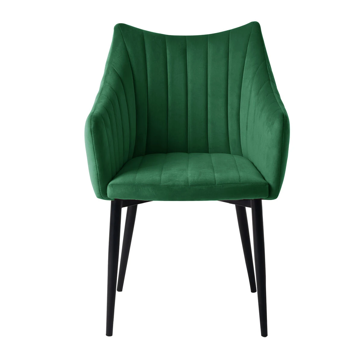 Moderni samettikankainen Olivia tuoli kuppimaisella istuimella ja selkänojalla. Tuolissa on koristeelliset tikkaukset ja pehmustettu istuin ja selkänoja.
