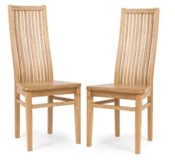 Modernisti ajaton Sandra ruokatuoli on valmistettu massiivitammesta. Selkänoja kaareutuu kauniisti ja antaa hyvän tuen koko selälle. Tuolin pinta on viimeistelty puolikiiltävällä lakalla.