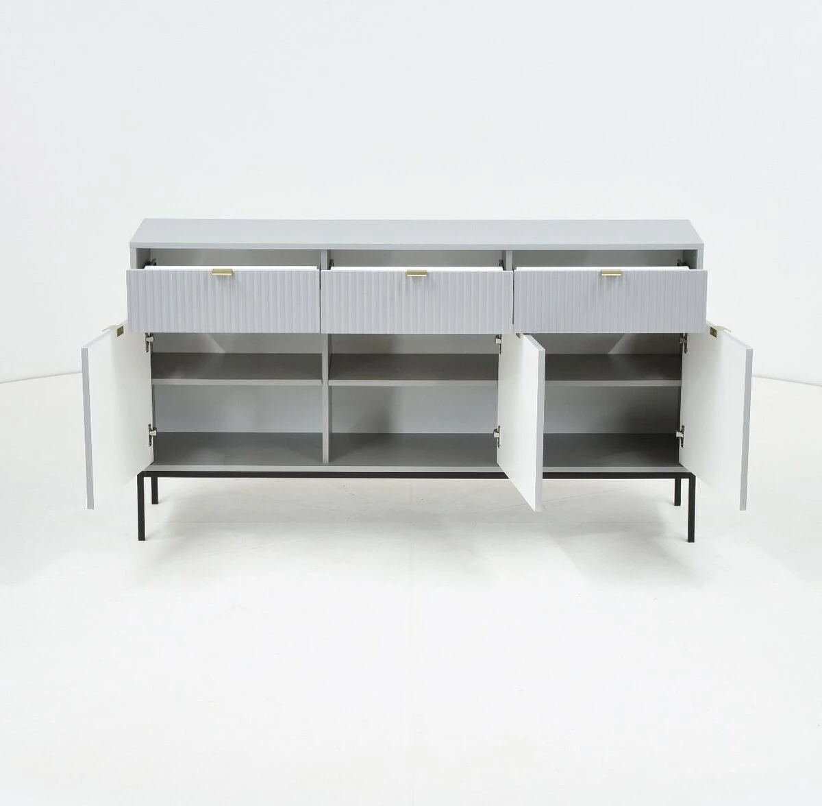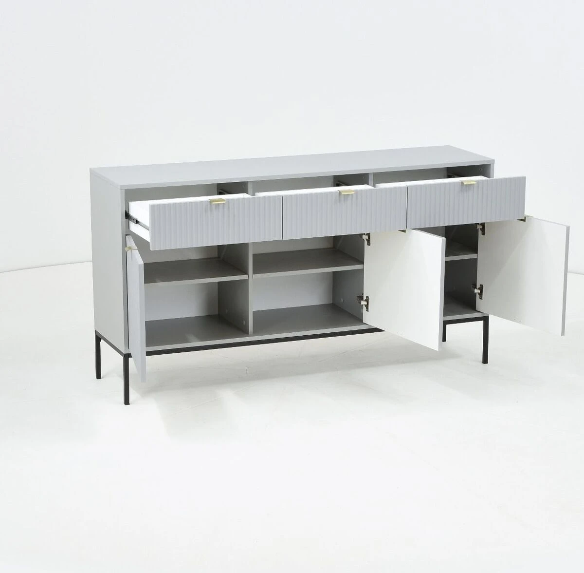 Tyylikkäässä ja sirossa Latte senkissä on runsaasti säilytystilaa kolmessa vetolaatikkossa sekä kolmessa säilytyskaapissa, joissa jokaisessa on välihylly. Etusarjoissa olevat urat antavat senkille kauniin, yksilöllisen ilmeen. Saatavana kahdessa tyylikkäässä värivaihtoehdossa.