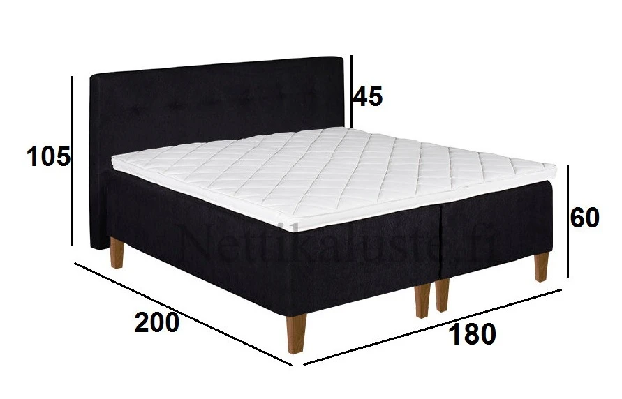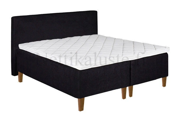 Serena-joustinsänkypakettiin kuuluu myös näyttävä pääty joka on verhoiltu samalla kankaalla kuin patjat sekä kauniit tammipetsatut massiivipuujalat.