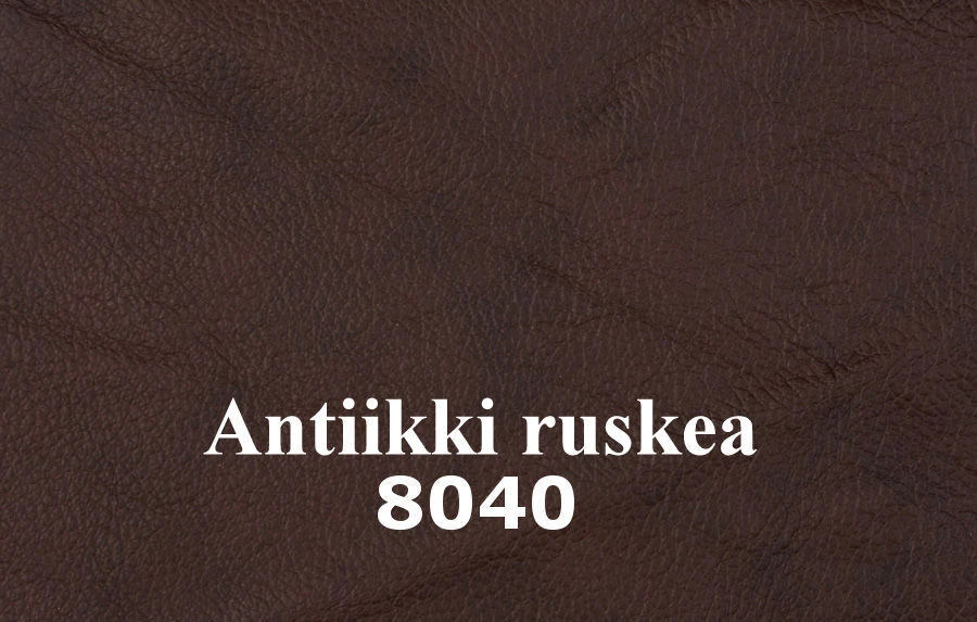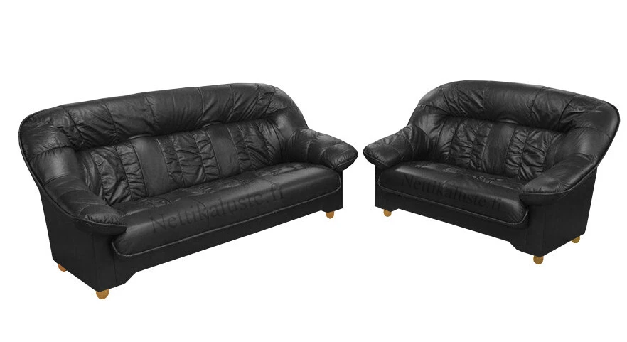 Verhoilumateriaalina laadukas läpivärjätty Madras-nahka kestää kulutusta pitkään. Taustat ovat keinonahkaa. Pyöreät jalat ovat massiivipuuta kahdessa värivaihtoehdossa.