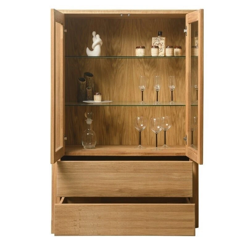 Näyttävä Lausenne vitriini kahdella lasiovella ja kahdella vetolaatikolla.