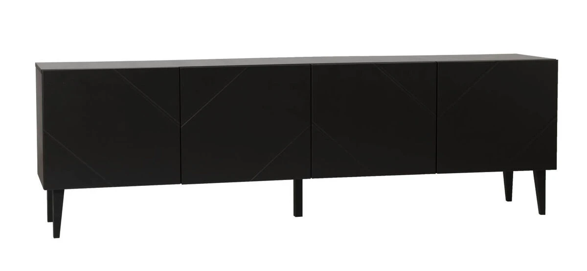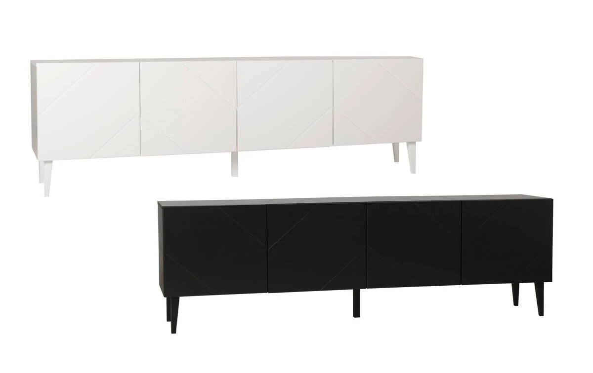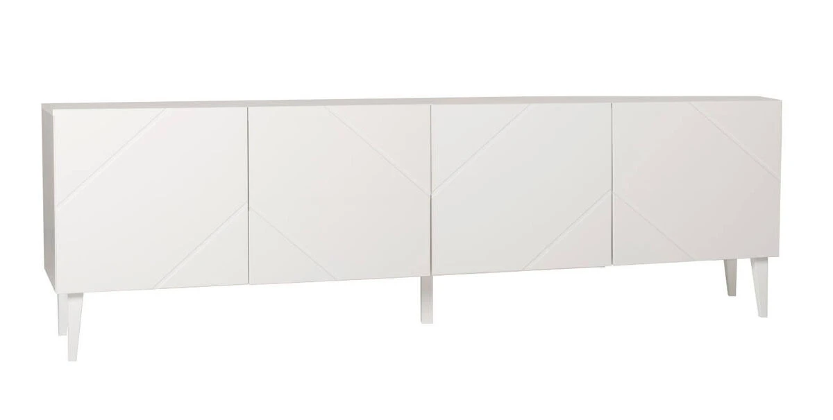 200 cm leveässä Vilja tasossa on 4 umpiovikaappia välihyllyillä. Tuote sopii esimerkiksi Tv-tasoksi tai senkiksi.