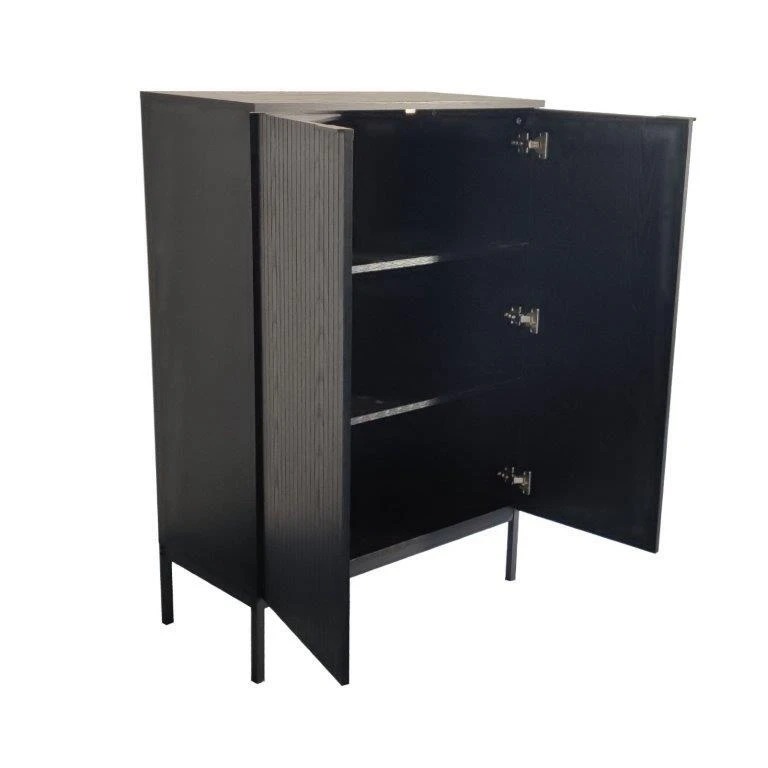 Siera kaapin musta väri yhdistettynä metallijalkaan ja kahvaan luo modernin ja hillityn tyylikkään kokonaisuuden.