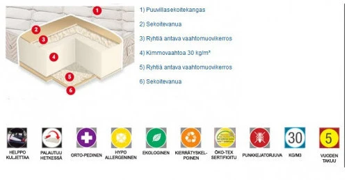 - Laadukas peruspatja HR30 korkeakimmoisalla vaahtomuoviytimellä