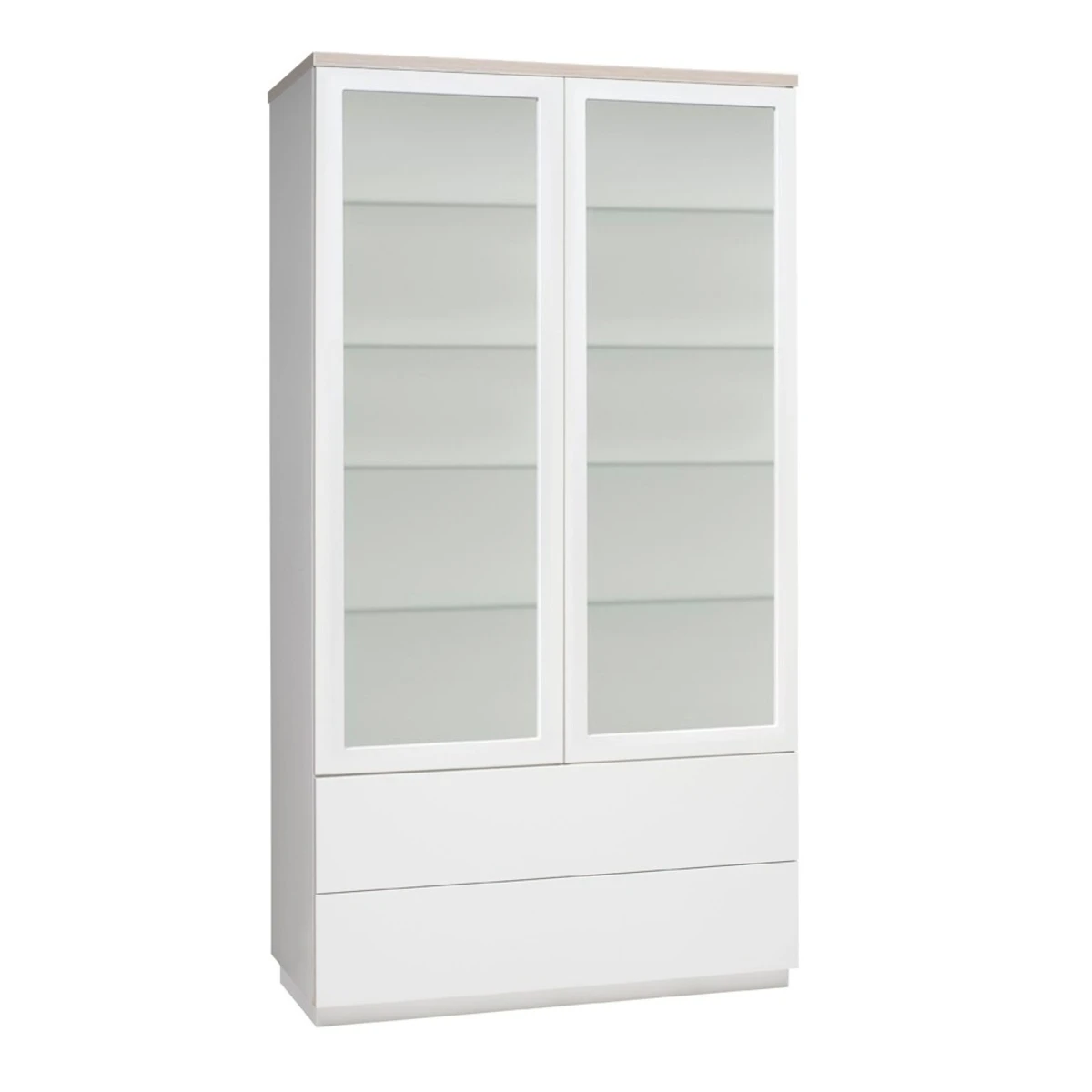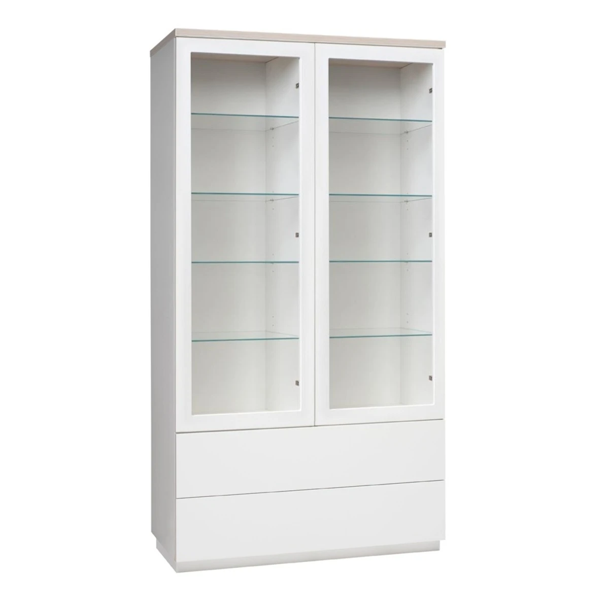 - Vitriinissä kaksi lasiovea ja kaksi vetolaatikkoa