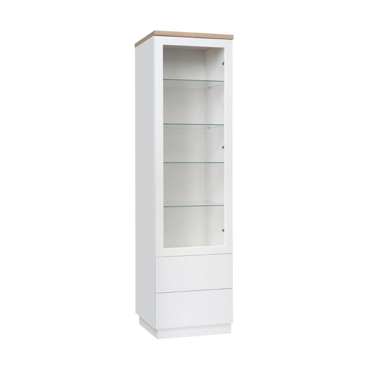 - Vitriinissä lasiovi ja kaksi vetolaatikkoa