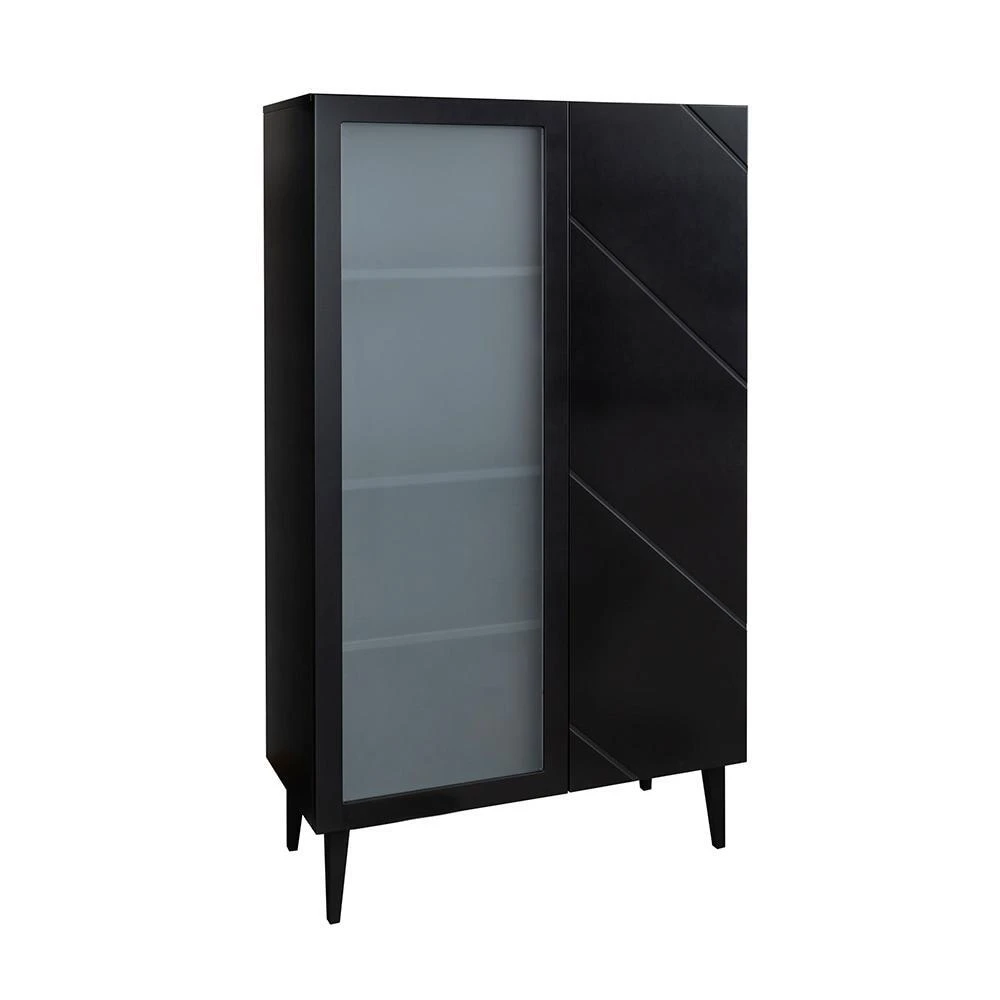 90 cm leveässä Vilja vitriinissä on yksi lasiovi ja yksi umpiovi. Ovissa on kätevät push to open-mekanismit. Voit valita lasioven kirkkaalla tai maitolasilla. Molempien ovien takana on 3 kpl korkeussäädettäviä hyllyjä.