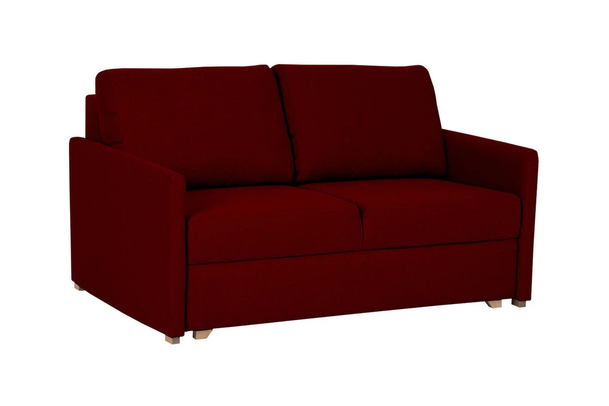 Kuvien tumman punainen sohva on verhoiltu Metro 59 kankaalla.