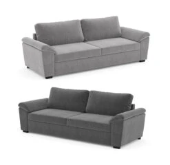 Kahdella tyylikkään harmaalla sävyllä verhoiltu Virginia vuodesohva tarjoaa miellyttävää istuinmukavuutta sekä tilavan vuoteen jopa kahdelle aikuiselle.